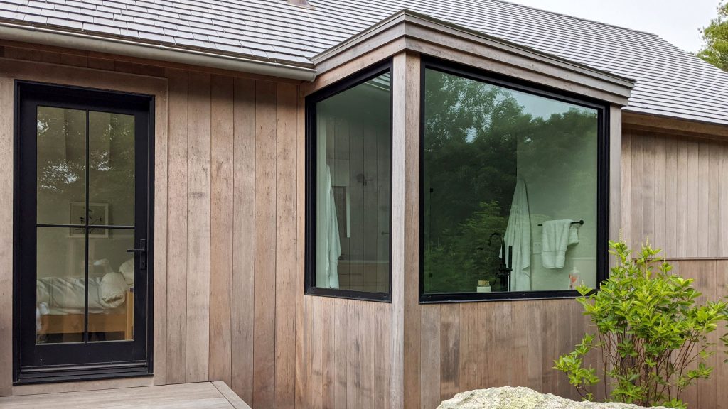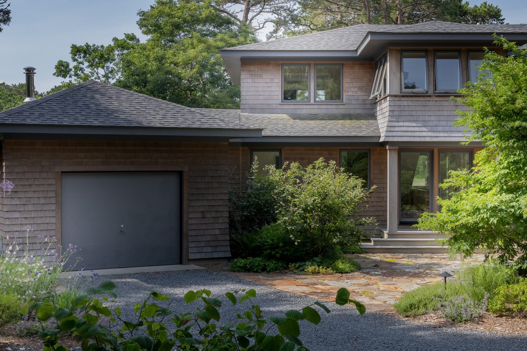 Together we recently completed this contemporary cape-style house featuring Loewen Windows. They used charcoal for an exterior color to match with the shingles, narrow profiles on the doors, and a majority of awnings and casements. Scroll through the photos of this collaboration.