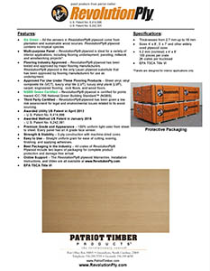 - Flooring Industry Approved – RevolutionPly® plywood has been tested and approved by major flooring manufacturers. RevolutionPly® plywood is the only Lauan plywood substitute that has been approved by flooring manufacturers for use as underlayment.